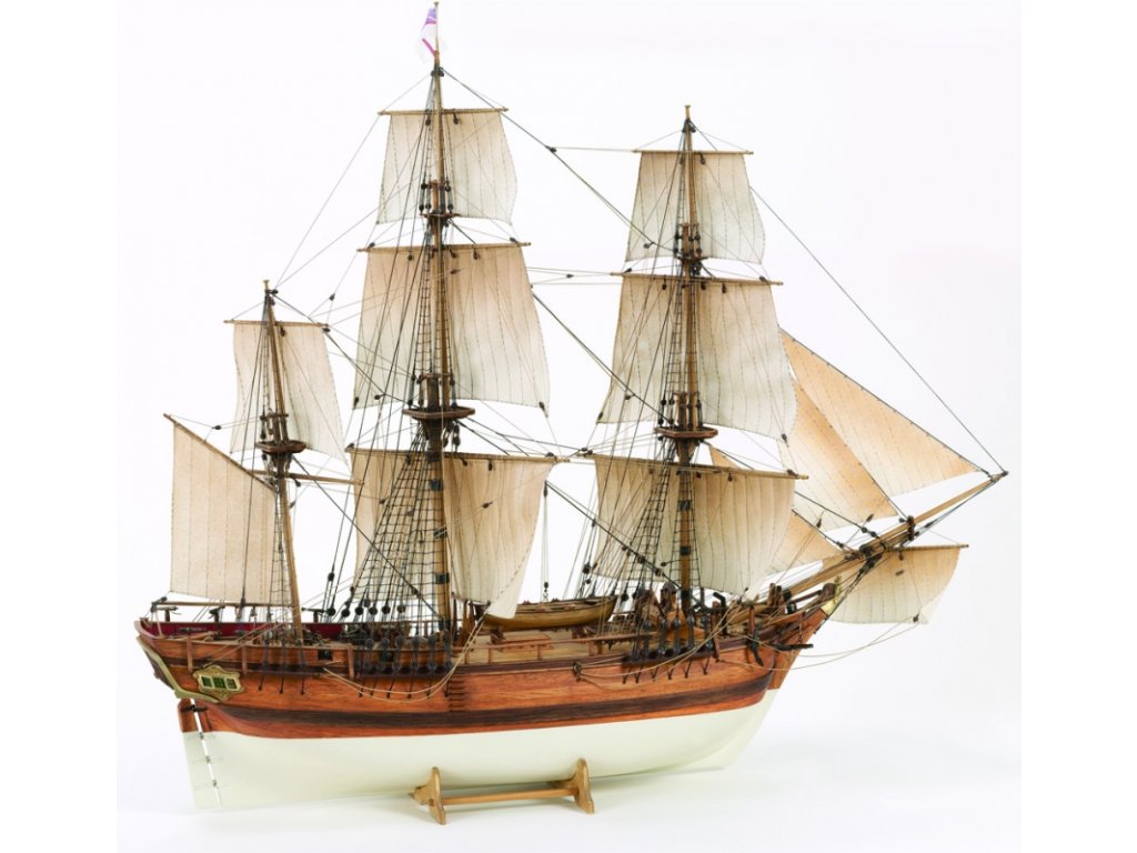 Bounty byla původně loď pro přepravu uhlí plavící se podél anglického pobřeží. Později byla zakoupena admiralitou a v roce 1787 vyslána na výpravu do Tichomoří - měla přivézt sazenice chlebovníku z Tahiti pro zajištění výživy osadníků v Západní Indii. V dubnu 1789 na zpáteční cestě došlo ke vzpouře, v důsledku tvrdého a necitlivého velení kapitána Bligha a touhy posádky po návratu do tropického ráje. Vzbouřenci vedení prvním důstojníkem Fletcherem Christianem vysadili kapitána a hrstku věrných mužů do malého člunu a vrátili se s Bounty zpět na Tahiti. William Bligh to možná neuměl s lidmi, ale námořník byl skvělý - 3618 námořních mil (6701 km) během 41 dnů na portugalský Timor ve člunu bez zásob, bez mapy, jen se sextantem a kapesními hodinkami, je dodnes jedním z největších námořních výkonů všech dob. Po pobytu na Tahiti část vzbouřenců uprchla před anglickou trestnou výpravou na lodi HMS Pandora a unikla na ostrov Pitcairn, kde Bounty spálila na břehu zátoky Bounty Bay. Po dalších 25 let nebyli objeveni, ale nakonec i je zasáhlo "rameno spravedlnosti" a stanuli před soudem v Anglii. Jejich potomci ale na Pitcairnu žijí dodnes. Bounty je určena pro pokročilé lodní stavitele; je konstruována jako neplovoucí stolní maketa.