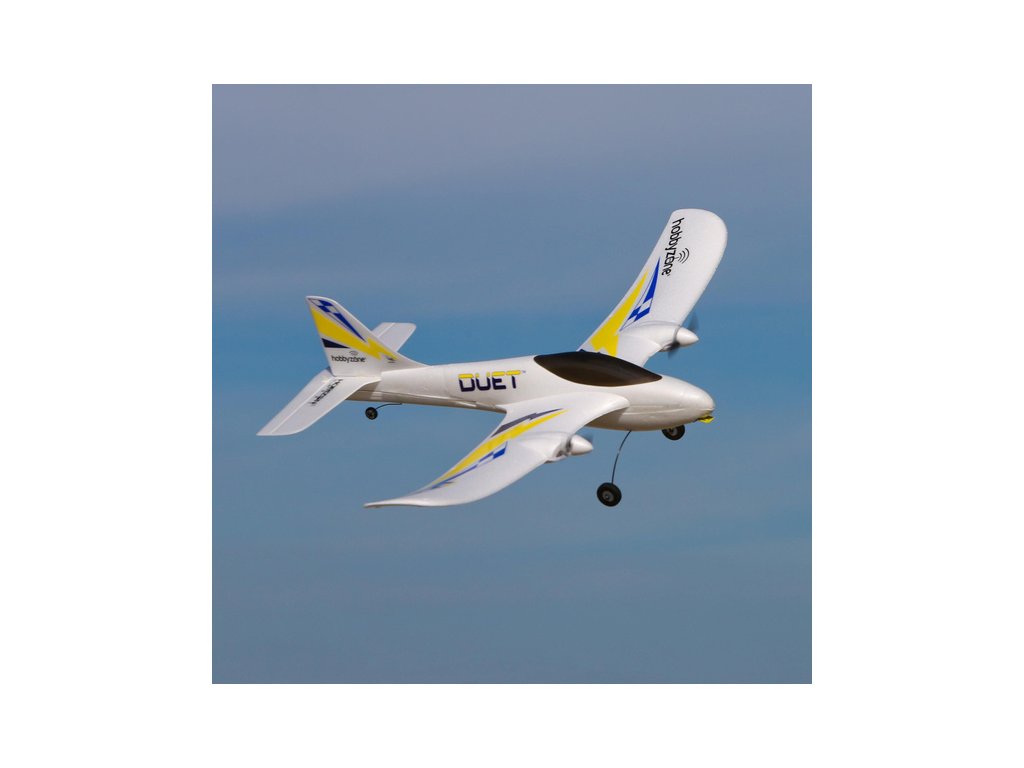 Vítejte ve vzrušujícím světě RC (rádiem řízeného) létání! Pokud jste někdy snili o tom, že se naučíte létat s dálkově řízenými modely, jste nyní jen krůček od splnění svého snu. I když jste ještě nikdy neletěli s modelem letadla, je Duet S 2 skvělou volbou, se kterým lze létat na louce, v parcích, fotbalových hřištích a dalších vhodných prostorech, kam se větší modely nevejdou. Je vybaven exkluzivní a inovativní technologií SAFE® (Sensor Assisted Flight Envelope) společnosti Horizon Hobby, která pomáhá předcházet ztrátě orientace a pádům, proto se můžete snadněji naučit létat. Režimy pro začátečníky a zkušené, vám umožní vybrat si úroveň stability a kontroly, kterou potřebujete nebo jste připraveni vyzkoušet, pouhým stisknutím řídící páčky. Je také vybaven telemetrickými funkcemi, které posílají úroveň napětí letové baterie do vysílače, aby si pilot ověřill, kolik času přibližně zbývá do konce letu. 3-kanálové ovládání nabízí ovládání výškovky (stoupání/klesání), řízení a ovládání plynu, zatímco dva elektromotory poskytují dostatek výkonu a diferenciální tah pro řízení směru letu.