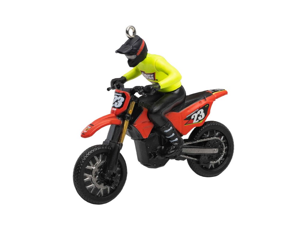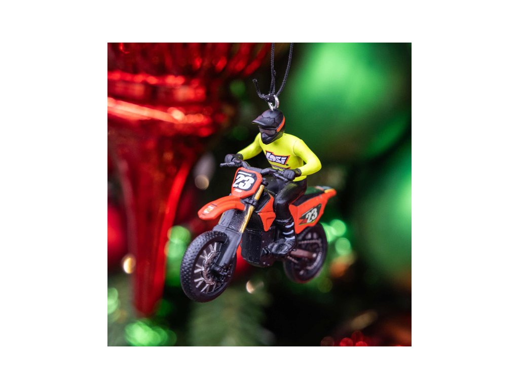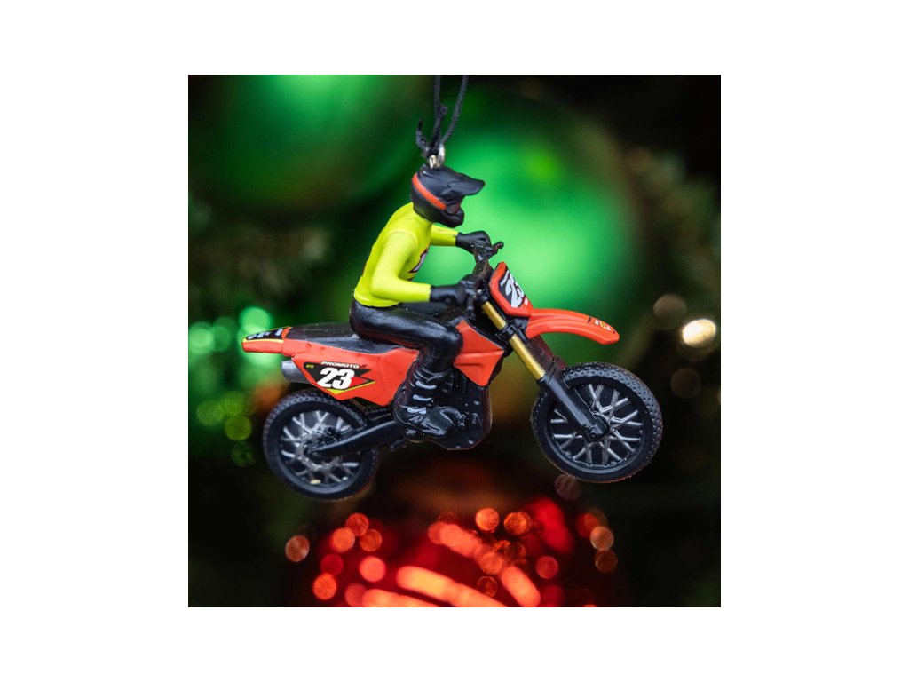 Originální vánoční ozdoba na stromeček, jako miniatura RC modelu motorky Losi Promoto-MX, potěší každé příznivce RC modelů. Přesné zpracování, včetně zbarvení. Kolekce 2023. Poutko pro zavěšení. Sběratelská ručně malovaná edice.
