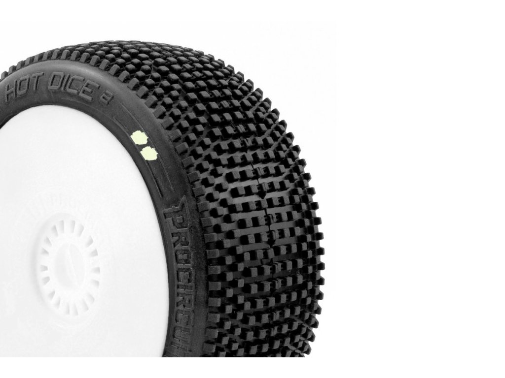 Hot Dice V2 nabízí řidičům konzistentní ovladatelnost na mírně kluzkých venkovních závodních tratích a opravdu vyniká, když se povrch začne zhutňovat a čistit s vysokou přilnavostí. Tato pneumatika dodá vaší buggy kvalifikační rychlost s životností vzorku schopnou zvládnout hodinové A-finále díky svým dobrým vlastnostem opotřebení.