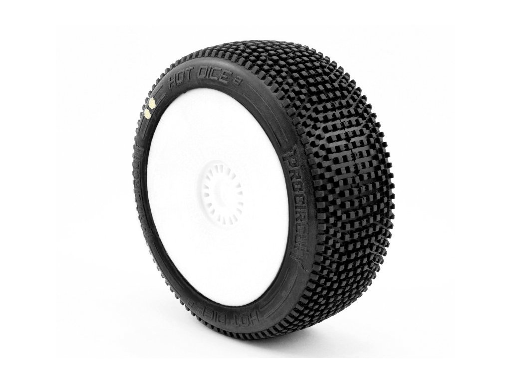 HOT DICES V2 BUGGY S1 (SUPER SOFT) nalepené pneumatiky, bílé disky, 2 ks.