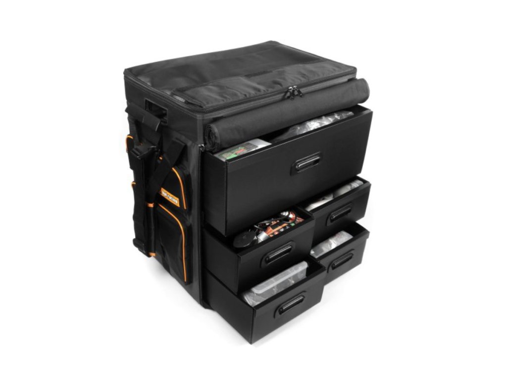 Použití odolných vlnitých černých plastových desek, které tvoří vnitřek brašny znamená, že je lehká a ovladatelná, takže se snadno dostanete tam, kam potřebujete. Brašna je vybavena kolečky z materiálu, jaký je používán u inline bruslí a výsuvným madlem pro přenášení, takže ji snadno přepravíte přes parkoviště i na svou oblíbenou RC dráhu.