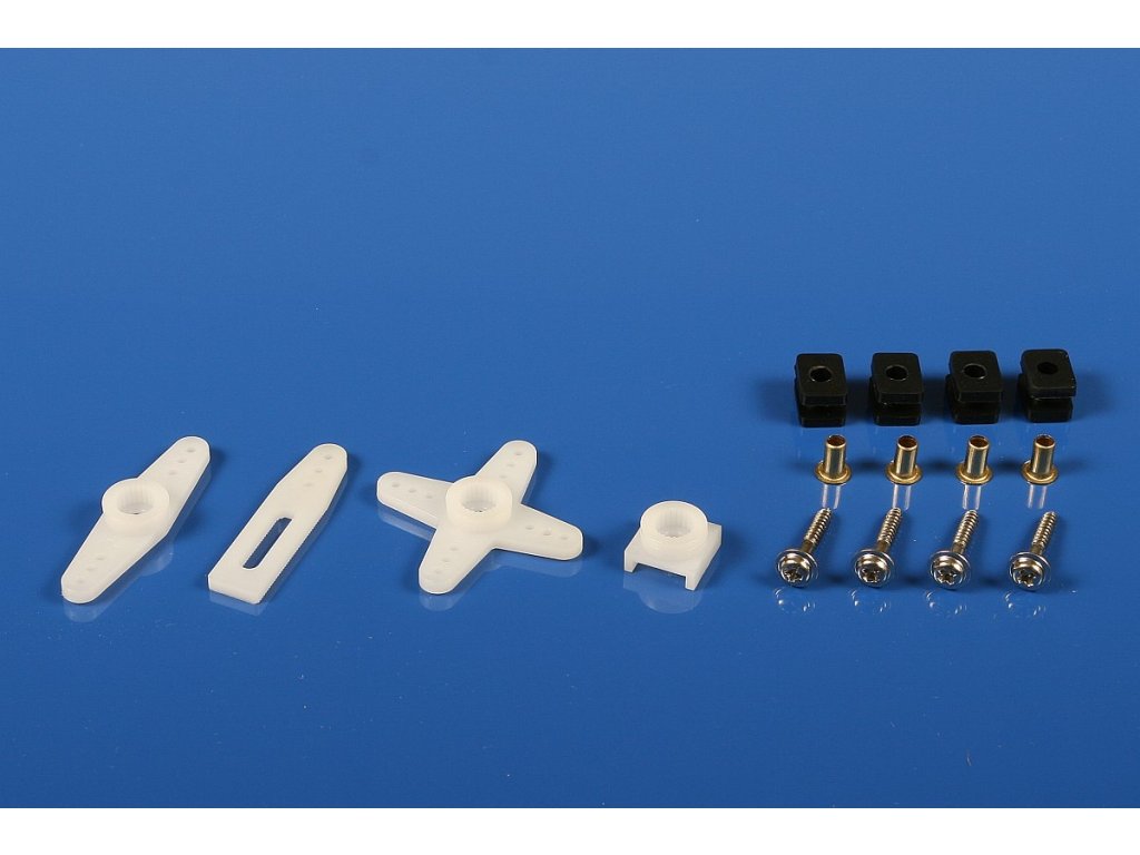 Speciální podvozkové servo standardní velikosti se zvýšeným tahem s plastovými převody s výstupní hřídelí uloženou v kuličkovém ložisku vestavěné v krabičce se sníženou výškou. Servo je dvoupolohové, neproporcionální; pohybuje se mezi koncovými body s výchylkou 180°. Velikost výchylek není možné nastavovat.