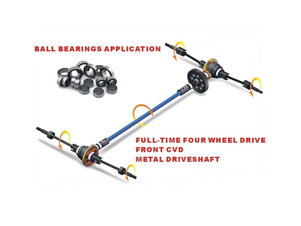 - Osazení kuličkovými ložisky a diferenciály s kovovými převody.