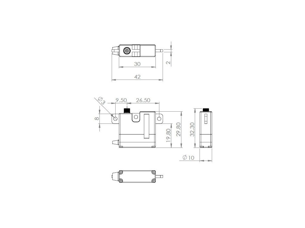 Ultra silné a rychlé programovatelné tenké digitální mikroservo s titanovými převody uloženými na třech kuličkových a dvou jehlových ložiscích. Díky přesným předepjatým převodům s minimálními vůlemi a ploché krabičce s výškou 10 mm je zvláště vhodné pro ovládání křidélek a klapek ve větroních (F3B, F3F, F3J, F5J apod.) a motorových modelech s tenkými profily křídla/ocasních ploch. Pro dokonalé chlazení i při vysokém zatížení je servo uloženo v hliníkové krabičce s patkami pro montáž na plocho.
