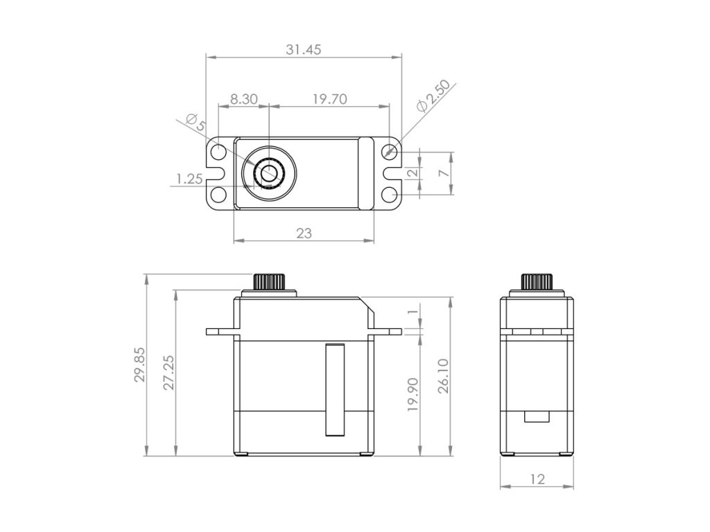 Silné a ultra rychlé programovatelné digitální mikroservo s kovovými převody s výstupní hřídelí uloženou na dvou kuličkových ložiscích. Ideální pro cykliku mini vrtulníků velikosti 380-420. Pro dokonalé chlazení i při vysokém zatížení je servo uloženo v hliníkové krabičce.