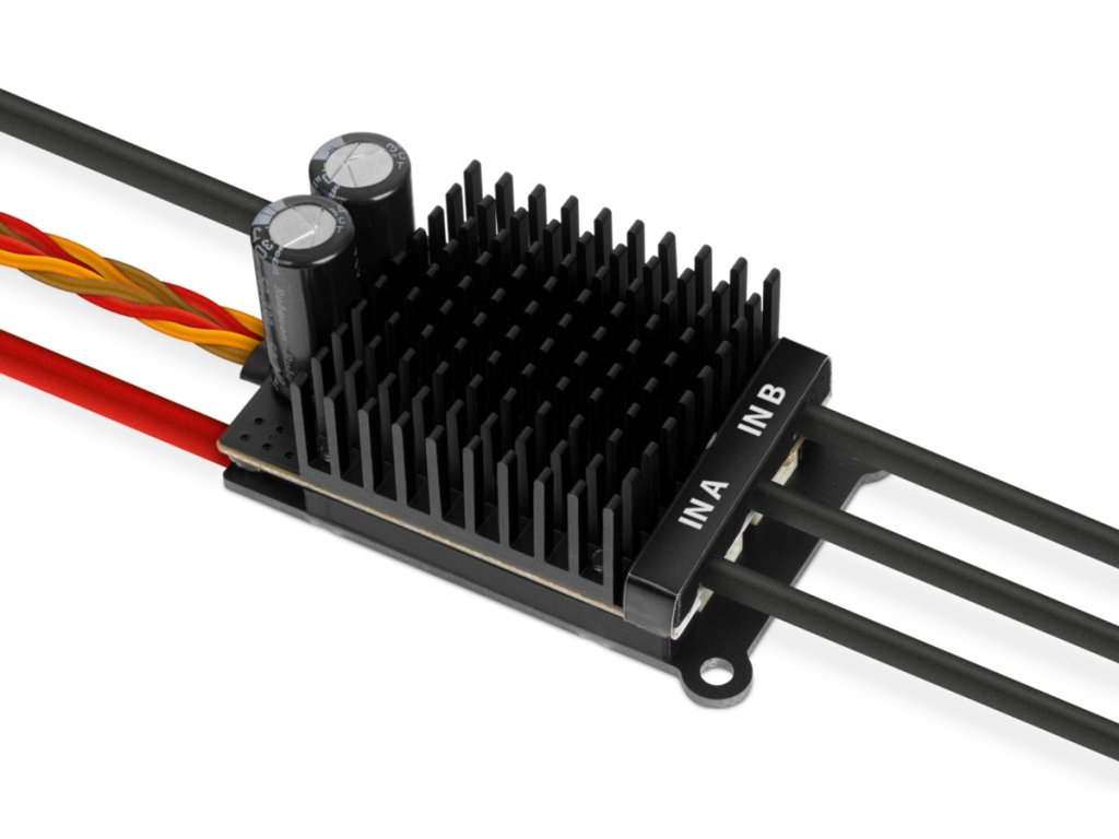 Výkonný regulátor BLDC motorů s trvalým proudem až 80A při napětí do 51V (12S LiPo). Se speciálním firmwarem možnost režimu startéru či starter-generátoru.