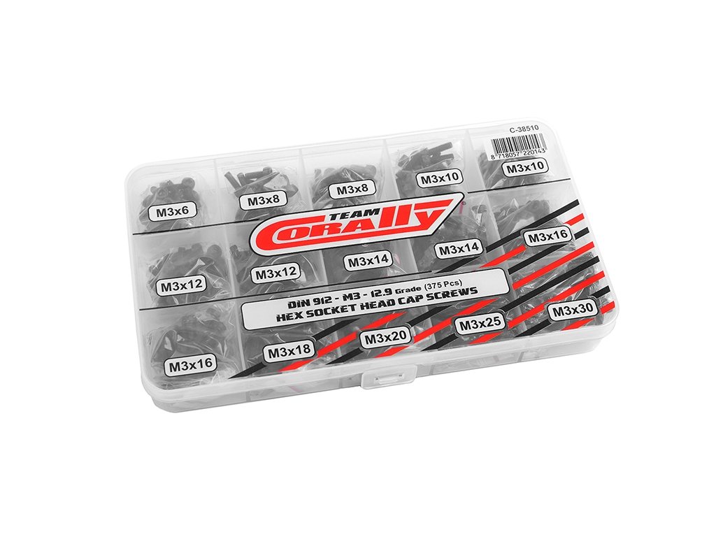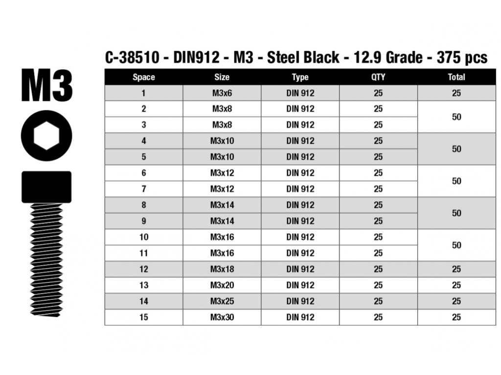 Imbus šrouby s válcovou hlavou - sada/box - M3 - ocelové černé, 375 ks.