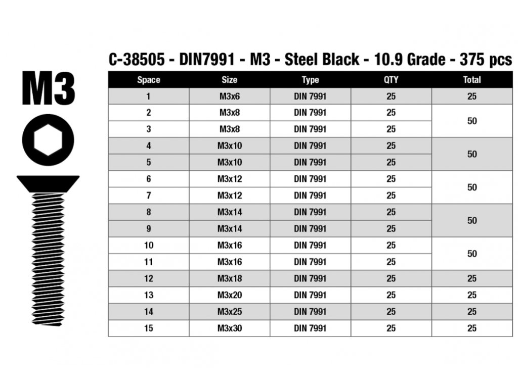 Imbus šrouby s zápustnou hlavou - sada/box - M3 - ocelové černé, 375 ks.