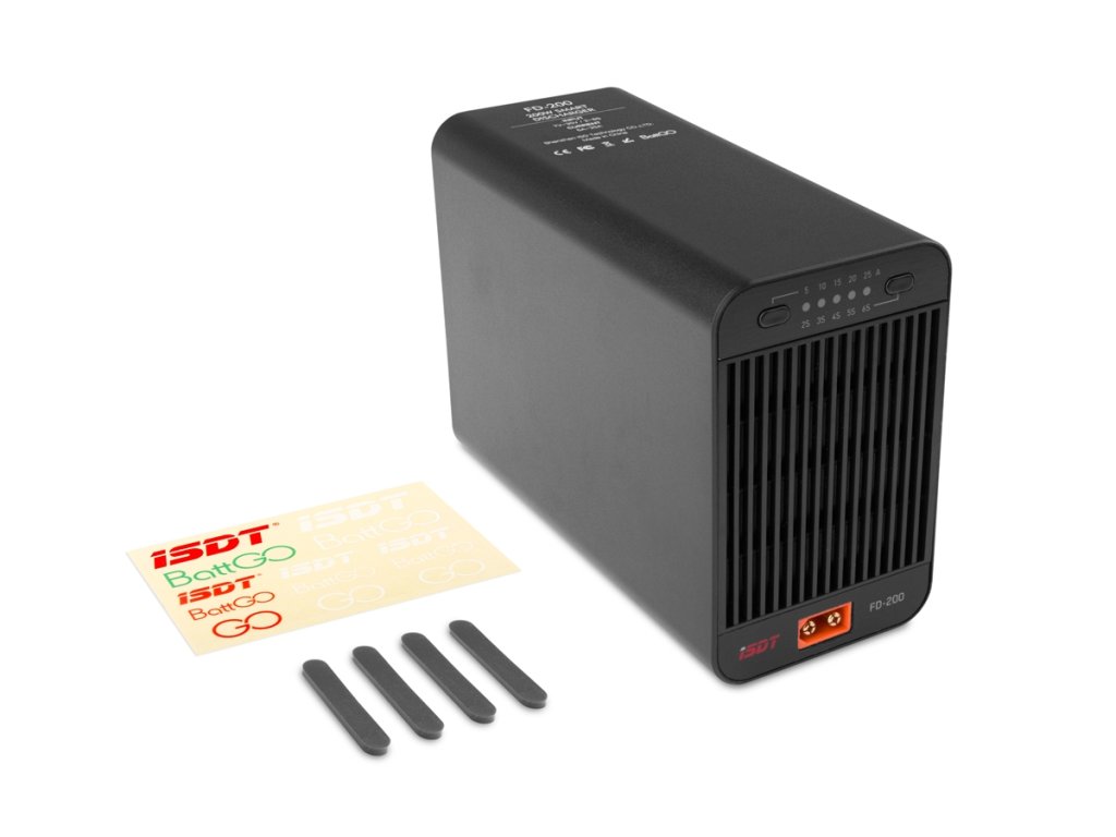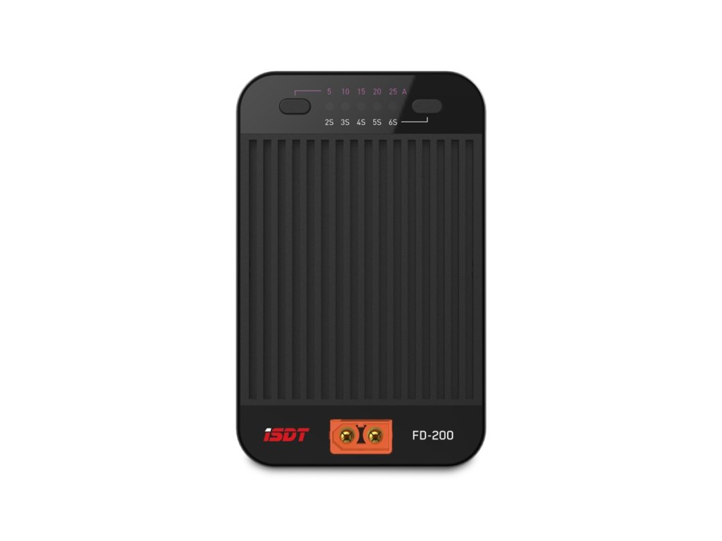 FD-200 je výkonný vybíječ, který umožňuje vybíjet lithiové akumulátory s 2-8 články (7-35 V) proudem 5-25 A (při max. výkonu 200 W). Je to ideální doplněk k nabíječům, které nedisponují funkcemi vybíjení nebo skladovacího vybíjení. pro bezdrátové nastvování parametrů je vybaven Bluetooth modulem umožňujícím připojení ke smartphonu s aplikaci isdGO (pro operační systémy Android i iOS).