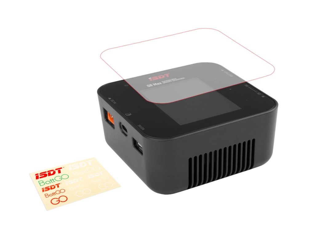 Sada nabíječe obsahuje: nabíječ ISDT Q8 Max, chránič displeje, návod.