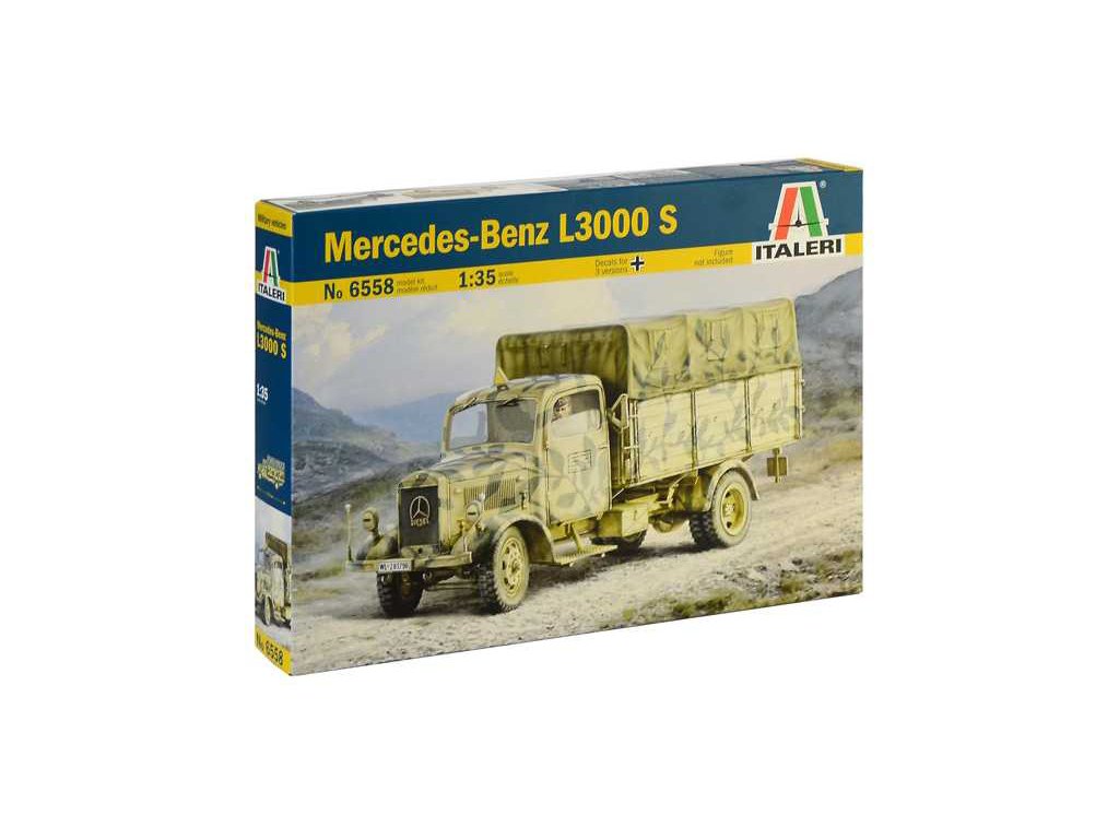 Plastikový model Italeri 6558 - military Mercedes-Benz L3000 S v měřítku 1:35 ke slepení. Délka modelu 179 mm, obtížnost 3. Balení obsahuje SKVĚLÉ OBTISKY PRO 3 VERZE.