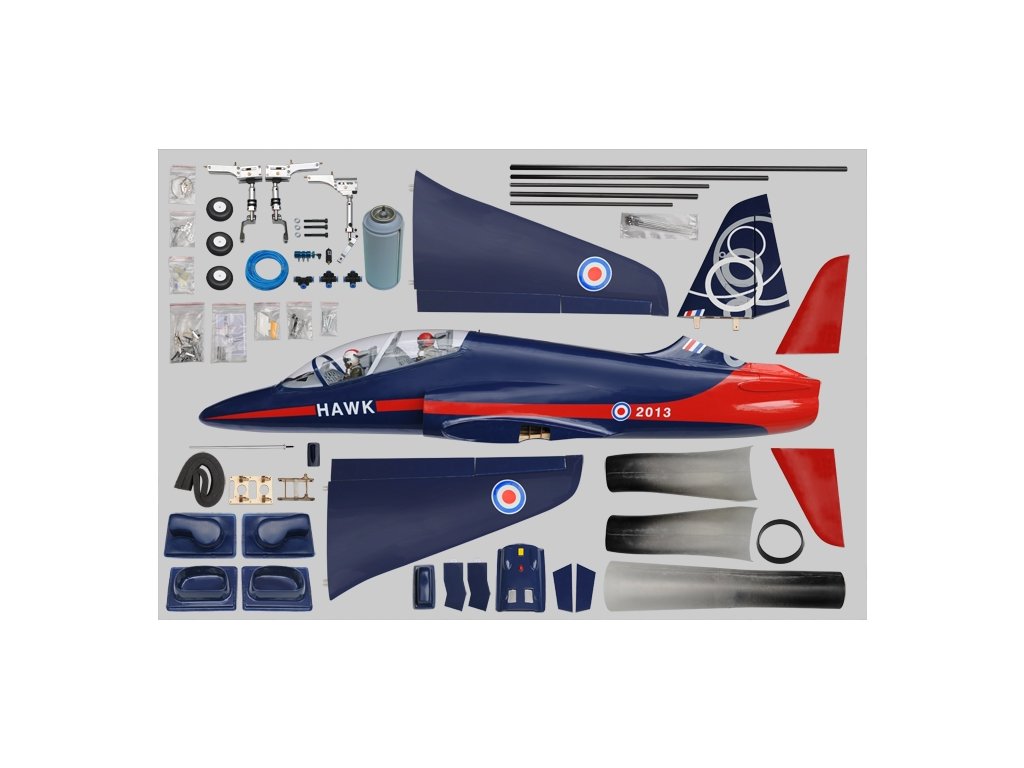Stavebnice obsahuje: potažený trup, křídlo a ocasní plochy, laminátové přívodní "roury" a trysku, pneumatický zatahovací podvozek, sadu drobného příslušenství a obrázkový návod.