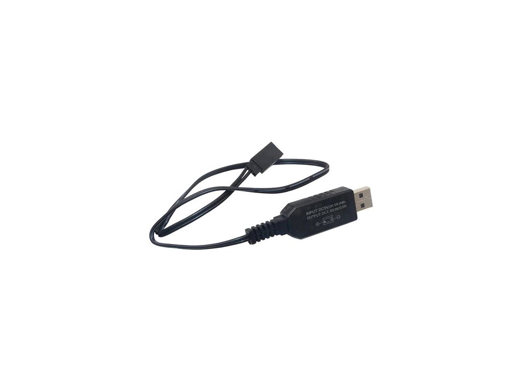 USB nabíječ pro dvoučlánkový Li-Fe akumulátor 6.4V 700mAh. Vstupní napětí 5V DC (min. 1A), výstup 7.4V DC (0.5A). Konektor RX typu JR.