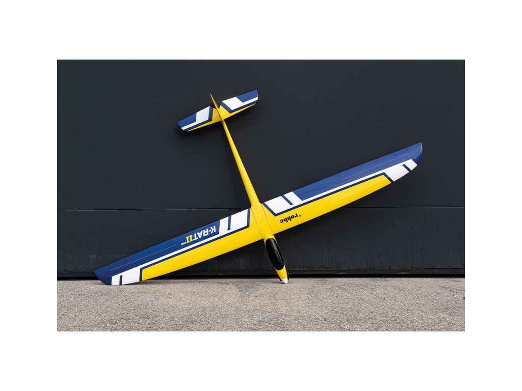 RC model hotlineru K-Rat II Pro o rozpětí 2m ve verzi PNP je vybaven střídavým výkonným motorem, sklopnou vrtulí s kuželem a čtyřmi servy. Stačí doplnit regulátor, baterii a RC soupravu. S modelem můžete létat akrobacii, rychlé průlety, termiku a užít si s ním zábavu i tréninkové lety. K-RAT II PRO je nástupcem úspěšného a široce používaného modelu K-RAT II v kompletní sklolaminátové (GRP) konstrukci. Splňuje nejmodernější požadavky, pokud jde o konstrukci a aerodynamiku draku. Díky vyváženým a příjemným letovým vlastnostem, méně zkušení i ambiciózní piloti dostávají do rukou všestranný model, který mohou použít téměř do každého počasí.