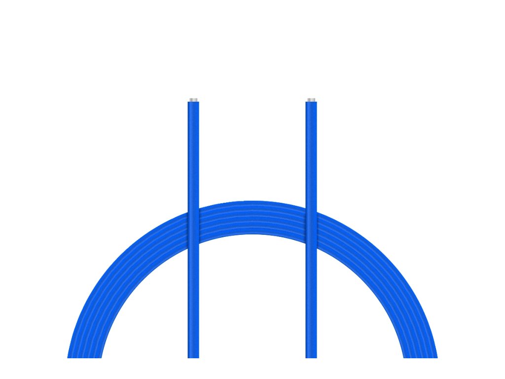 Vysoce ohebný silový kabel 2,5 mm2 se silikonovou izolací v modré barvě. Lanko splétané ze 651 pramenů 0,07 mm, vnější průměr 3,3 mm, max. 48 V, trvalé proudové zatížení 31,9 A, max. 55,0 A/5 min. Vyrobeno v Německu.Doplňkové parametry
