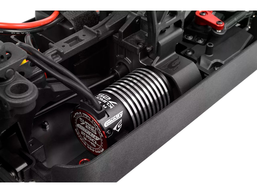 Jeho hybridní hliníkový držák motoru nabízí tři polohy motoru pro přesné nastavení vůle pastorku. Zesílené hnací ústrojí s ocelovými unašeči a robustním hlavním převodovým převodem 52T zajišťuje dlouhou životnost. Široké těhlice z Kagamy a Sketeru dodávají stabilitu a schopnosti v terénu, zatímco nové wheelie kolečko pomáhá zvládat obrovský výkon. Od střídavého motoru Kuron 725 až po regulátor Torox 135 - každá součástka přispívá ke vzrušující maximální rychlosti přes 80 km/h. Vysílač CT2S 2,4 GHz, systém vyztužení podvozku a křídlo s vysokou přítlačnou silou doplňují balíček, takže Kagama4 je skutečným důkazem odkazu inovací a výkonu firmy Team Corally.