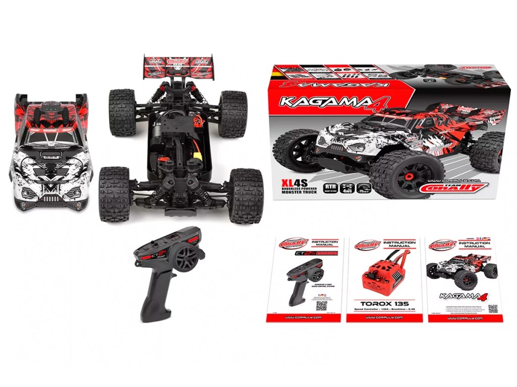 Kagama4, RC monster truck XL4S, je navržen pro začátečníky i zkušené bashery. Je postaven na stejném podvozku jako model Syncro4 a přináší inovativní funkce za bezkonkurenční cenu. Nové velkoobjemové kompozitové tlumiče, extrémně odolné kompozitové parohy tlumičů a zesílený systém výztuh podvozku jsou příkladem dokonalé kombinace odolnosti a výkonu. Díky výraznému hliníkovému podvozku v titanové barvě, ochranným deskám, novému wheelie kolečku a aerodynamickému křídlu Kagama4 nově definuje off-road styl.