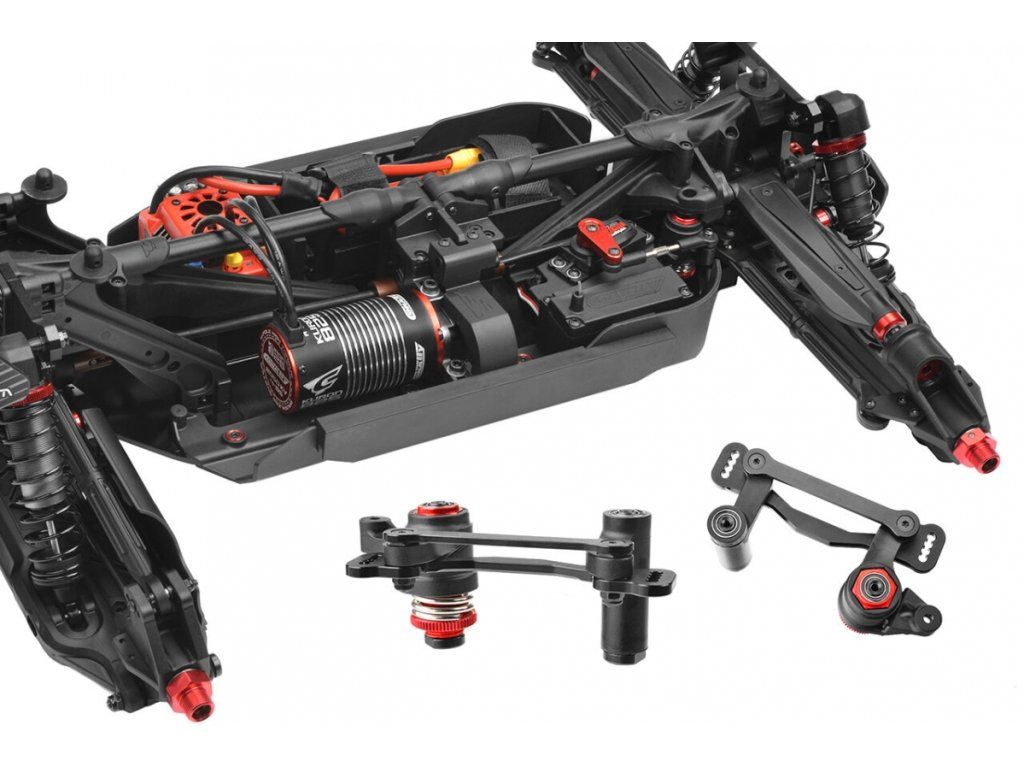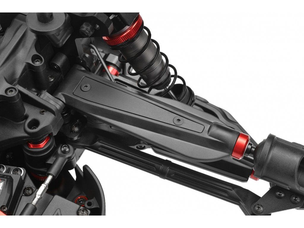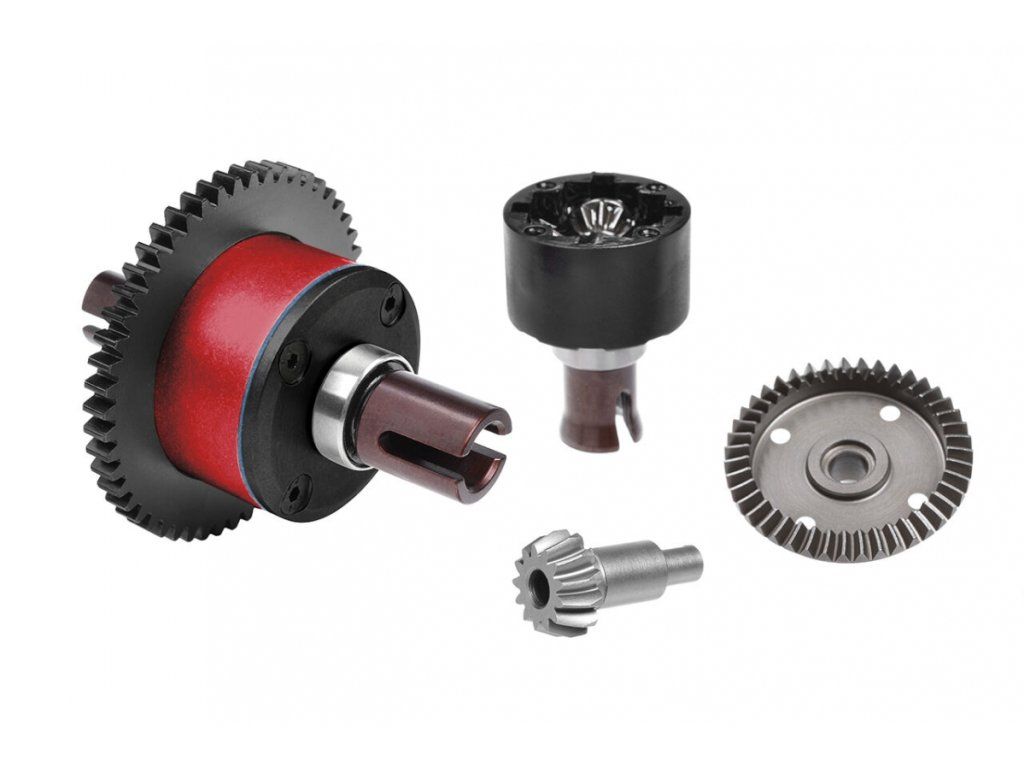 Jádrem tohoto hnacího ústrojí jsou CNC kuželové převody, zářivě červeně eloxovaná hliníková centrální skříň diferenciálu a robustní pružinové ocelové vývody - symfonie pečlivě sehraná pro neústupný výkon a dlouhou životnost. A ve světě Monster Trucků s nadměrnými pneumatikami a koly se vlastnosti tohoto robustního hnacího ústrojí ještě znásobí!