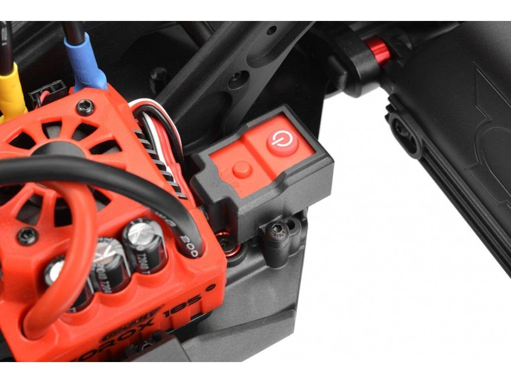 Vydejte se na elektrizující cestu s důvěryhodnou elektronikou modelu Kagama. Zažehněte své vzrušení z rychlosti s motorem Kuron 825 o napětí 2050 kV a oddejte se bezproblémové akci, kterou umožňuje Regulátor Torox 185 s kapacitou 6S. Ovládejte ostré zatáčky a přesné řízení pomocí serva řízení Varioprop CRHV-7225, které je přesně přizpůsobeno vašim potřebám. Ve spojení s vysílačem CR2T 2,4 GHz může dosah Kagamy přesáhnout 300 metrů a poskytuje bleskovou odezvu potřebnou při maximálních rychlostech přesahujících 110 km/h. Připravte se na revoluci v bashingu!