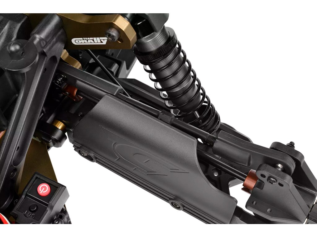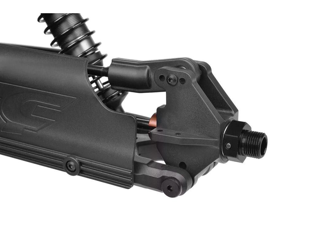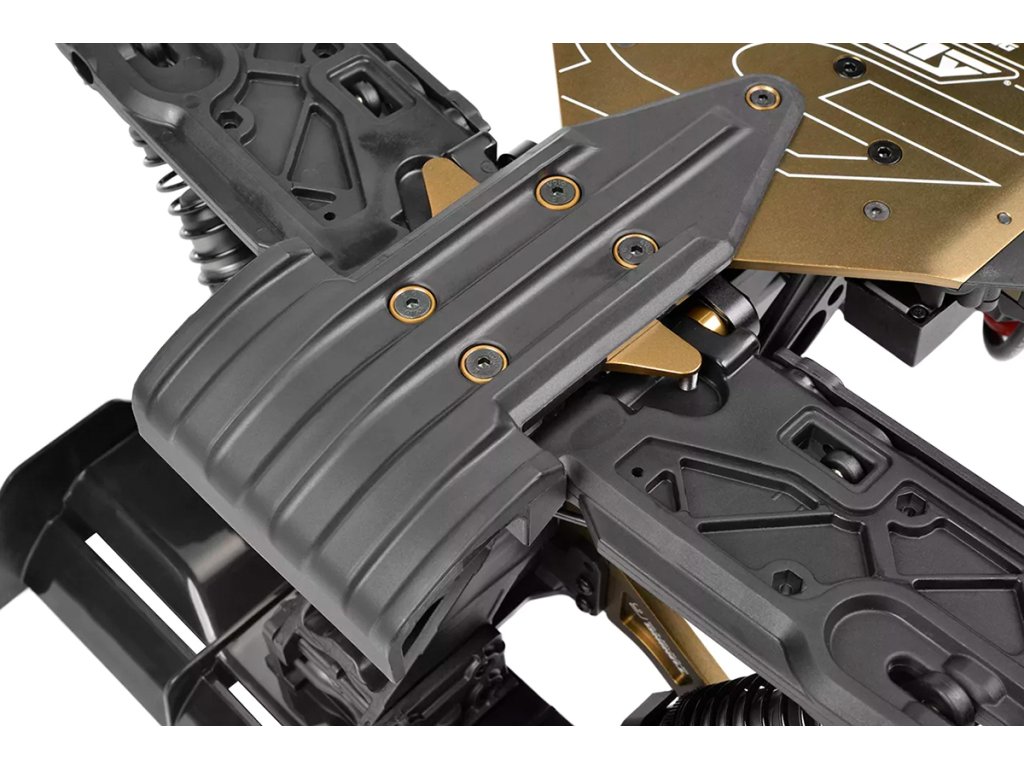 Srdcem modelu Kagama Limited Edition je jeho nekompromisní základ z hliníku 7075 – navržený pro extrémní odolnost a přesné ovládání. Zlatě eloxované hliníkové plato podvozku z hliníku 7075 poskytuje nejen bezkonkurenční pevnost, ale také výjimečný styl. Pro další zpevnění konstrukce jsou hnací ústrojí zajištěny CNC obráběnými přepážkami z hliníku 7075, které zabraňují nežádoucímu pohybu a zajišťují plynulý a spolehlivý přenos výkonu i při extrémním zatížení. Mezitím 6mm hliníkové věže tlumičů 7075 v kombinaci s novými distančními vložkami tlumičů poskytují pevnou podporu zavěšení, což umožňuje osvědčeným tlumičům Kagama konzistentně absorbovat nárazy – bez ohledu na to, jak tvrdě na truck tlačíte. Kromě toho hliníkový servo saver bell crank 7075 zvyšuje přesnost a odolnost řízení a zajišťuje přímé a citlivé ovládání za všech jízdních podmínek.