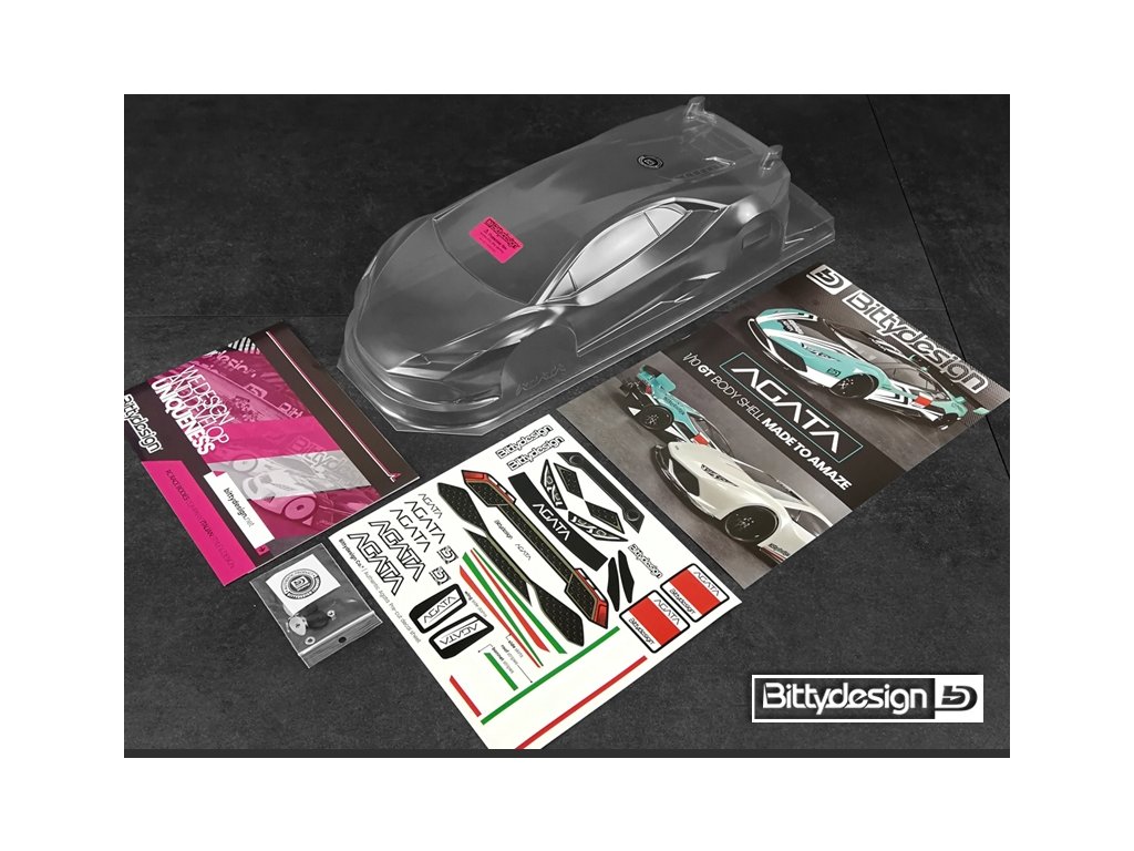Čirá karoserie pro modely 1/10 GT je pokryta ochranou folií, vyrobena z velmi kvalitního polykarbonátu, balení obsahuje maskovací nálepky včetně samolepek.