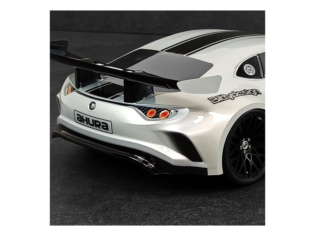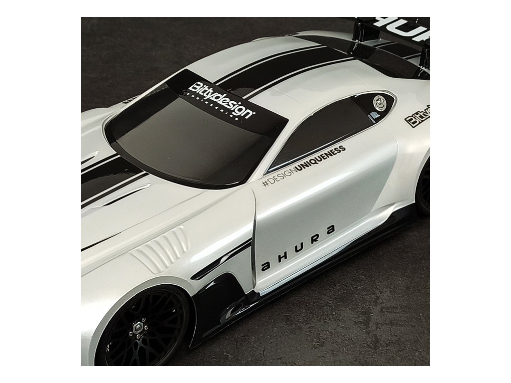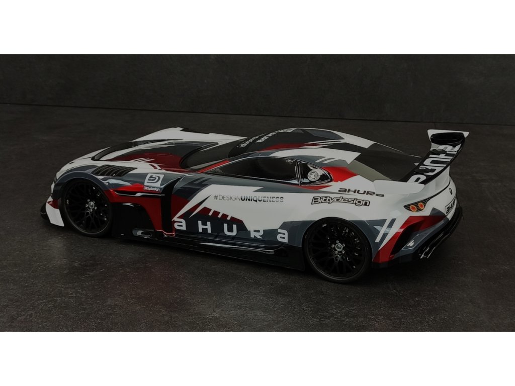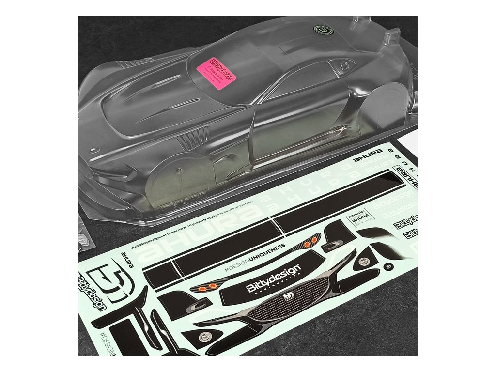 Čirá karoserie pro modely 1/10 GT je pokryta ochranou folií, vyrobena z velmi kvalitního polykarbonátu, balení obsahuje maskovací nálepky včetně samolepek.