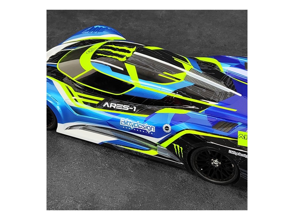 Čirá karoserie pro modely 1/10 GT je pokryta ochranou folií, vyrobena z velmi kvalitního polykarbonátu, balení obsahuje maskovací nálepky včetně samolepek.