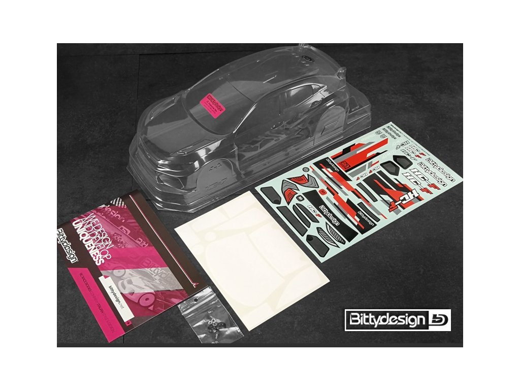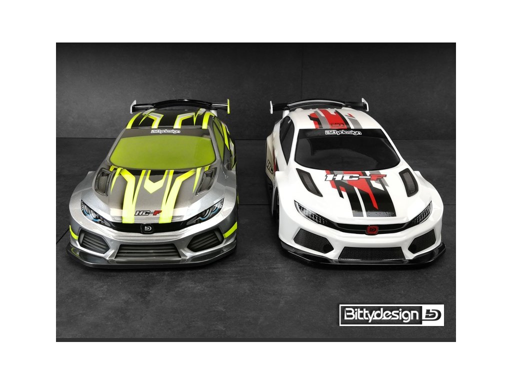 Čirá karoserie pro modely TC s předním náhonem v měřítku 1/10 je pokryta ochranou folií, vyrobena z velmi kvalitního polykarbonátu, balení obsahuje samolepky.