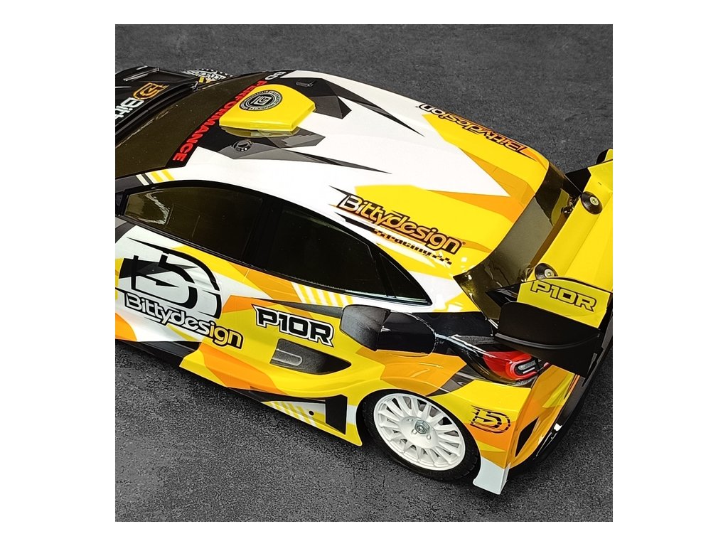 Čirá karoserie pro modely rally v měřítku 1/10 je pokryta ochranou folií, vyrobena z velmi kvalitního polykarbonátu, balení obsahuje samolepky.