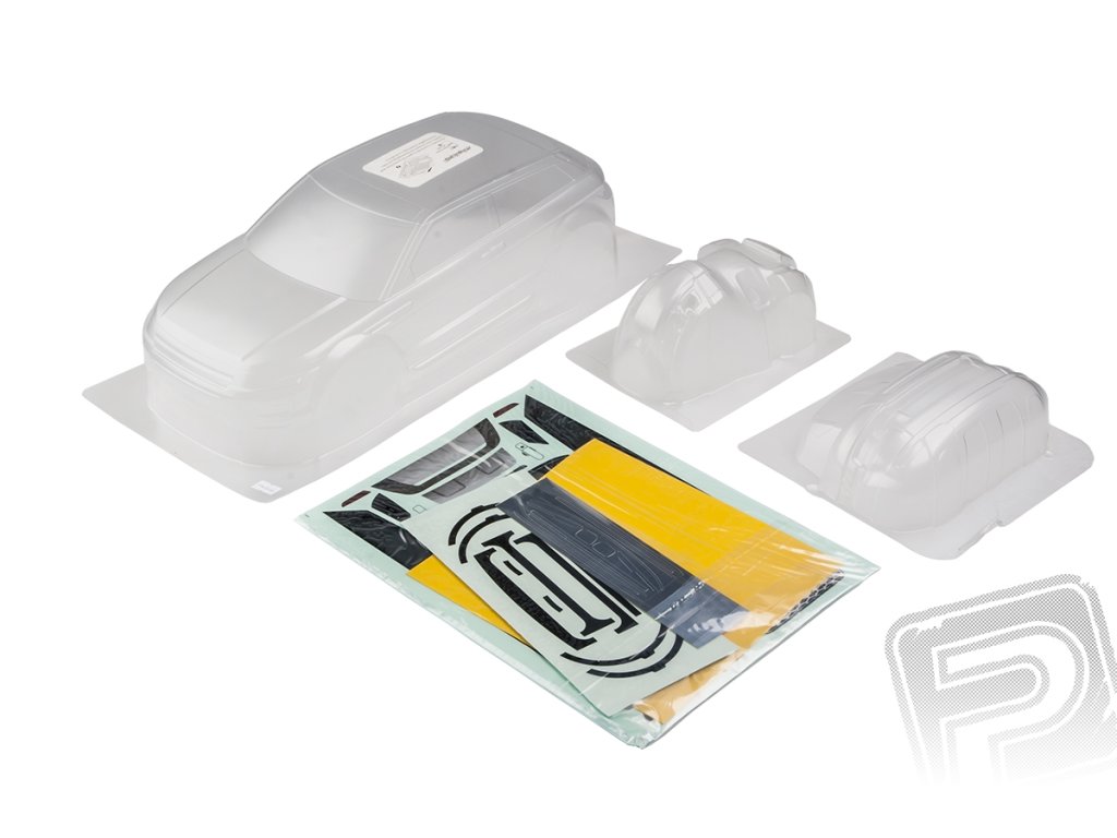 Čirá karoserie pro modely drift vč. nálepek a maskovacích šablon na okna.