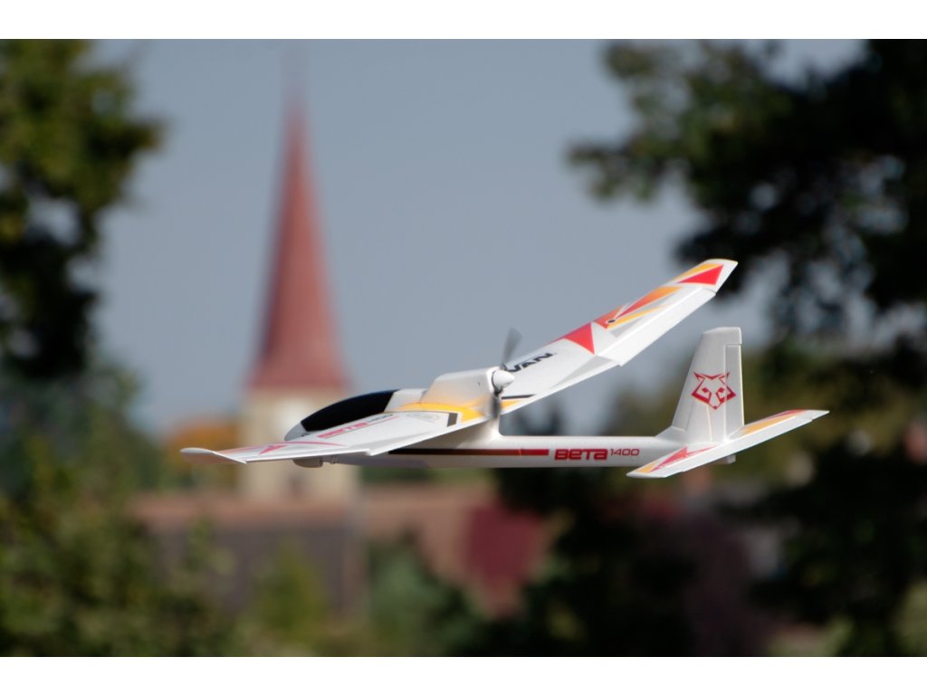 BETA 1400 je školní a cvičný motorový větroň z vysoce odolného extrudovaného polyolefinu EPO poháněný střídavým motorem. Díky své koncepci s motorem uloženým na pylonu za křídlem velmi dobře odolává hrubšímu zacházení a snáší i tvrdší „čuchometrické“ zapíchnutí přídě do rodné hroudy, které by u klasických modelů s motorem přídi vedly přinejmenším k poškození vrtule.