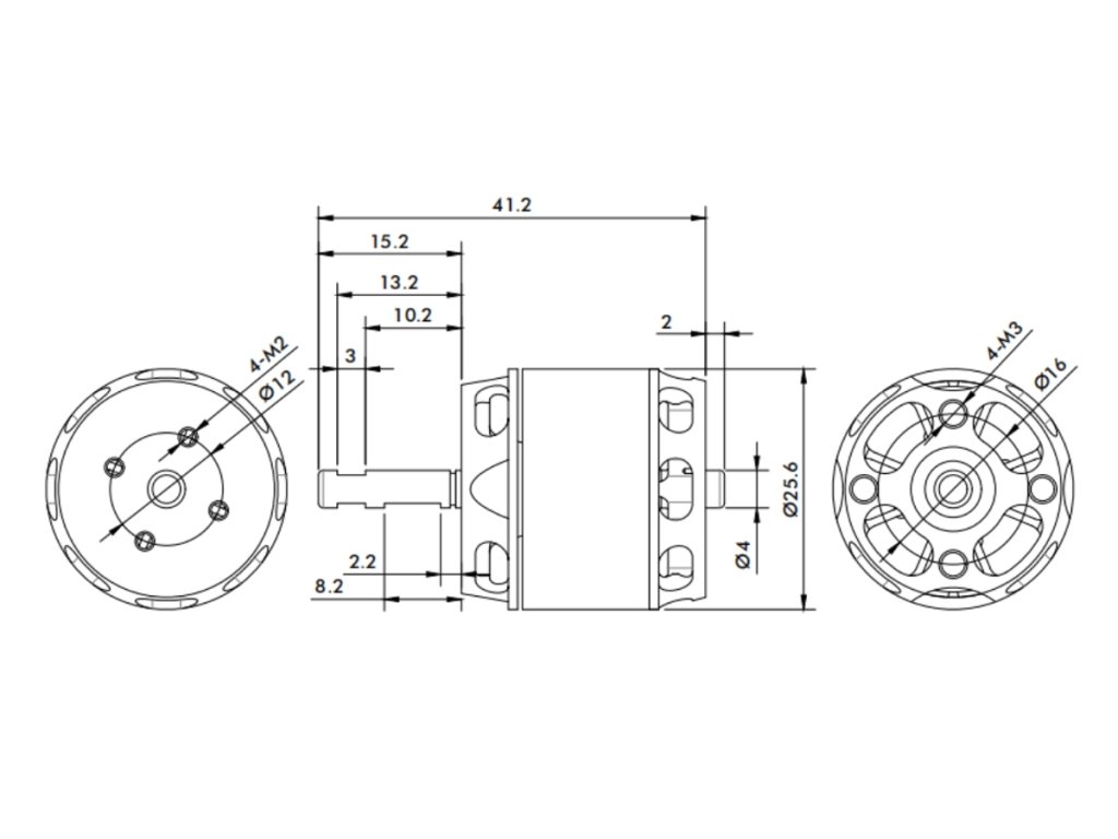 Montáž motoru: KAVAN PRO 2626-2500 je konstruován pro přední i zadní montáž. Při přední montáži za čelo motoru použijte nejméně dva (protilehlé), nebo čtyři šrouby M3, které zasahují do čela motoru v rozmezí 3 - 4 mm. Motorová přepážka by měla být z 2-2,5 mm letecké překližky. Sada pro zadní montáž (upevňovací kříž, unašeč vrtule pro zadní montáž) je dodávána spolu s motorem.