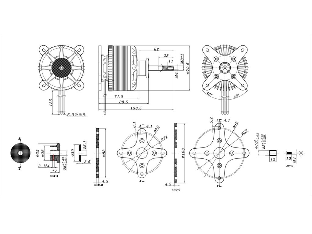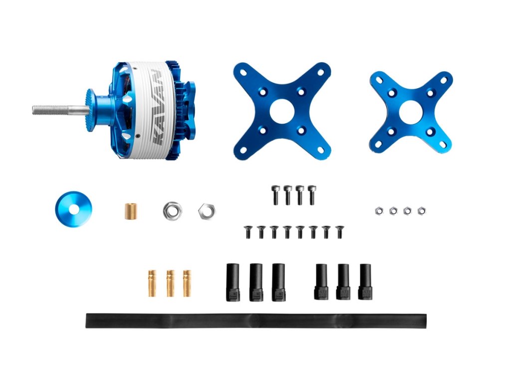 Sada motoru obsahuje: střídavý motor KAVAN PRO 8055-190 s kabely s připájenými 6 mm zlacenými konektory, sadu pro zadní montáž se dvěma upevňovacími kříži (Ø71/75 a Ø87/90 mm). Úplný návod k obsluze motoru si můžete stáhnout zde: Střídavé motory KAVAN PRO 5050+ - Návod k obsluze