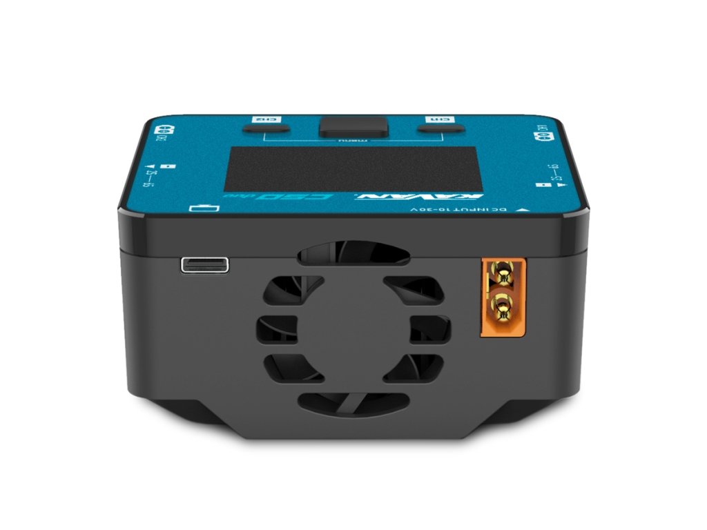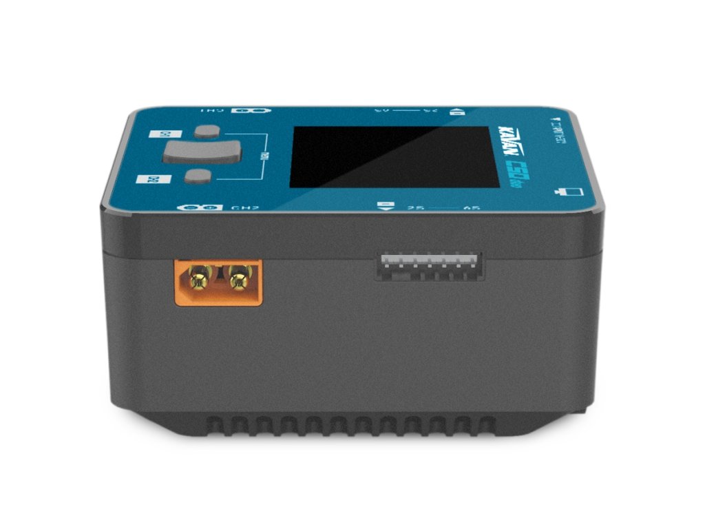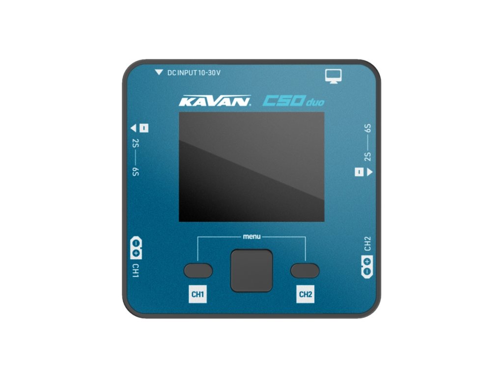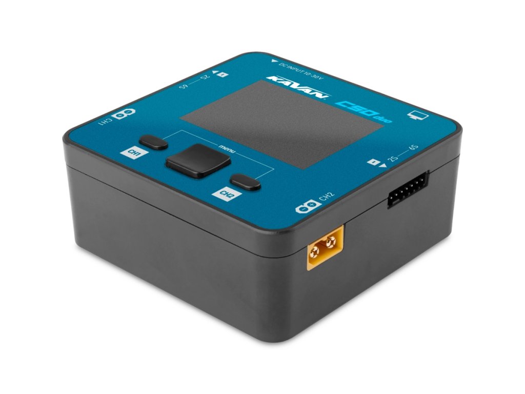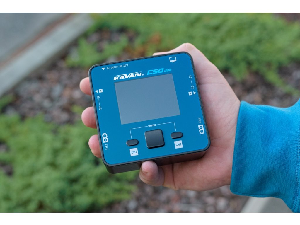 Miniaturní dvoukanálový nabíječ KAVAN C50 Duo 2x250W je inteligentní nabíječ s napájením z autobaterie/stabilizovaného síťového zdroje a velmi jednoduchou a přehlednou obsluhou. C50 Duo umožňuje nabíjet běžné typy článků (NiCd, NiMH, LiPo, LiHV, ULiHV, Li-ion, LiFe, Pb), navíc je vybaven vestavěnými šestikanálovými balancery, které zajišťují bezpečné nabíjení lithiových akumulátorů. Nabíječ je vybaven barevným LCD displejem a programovacími tlačítky, které vám poskytnou možnost komfortního a velice přehledného nastavování parametrů, řízení a sledování průběhu nabíjení.