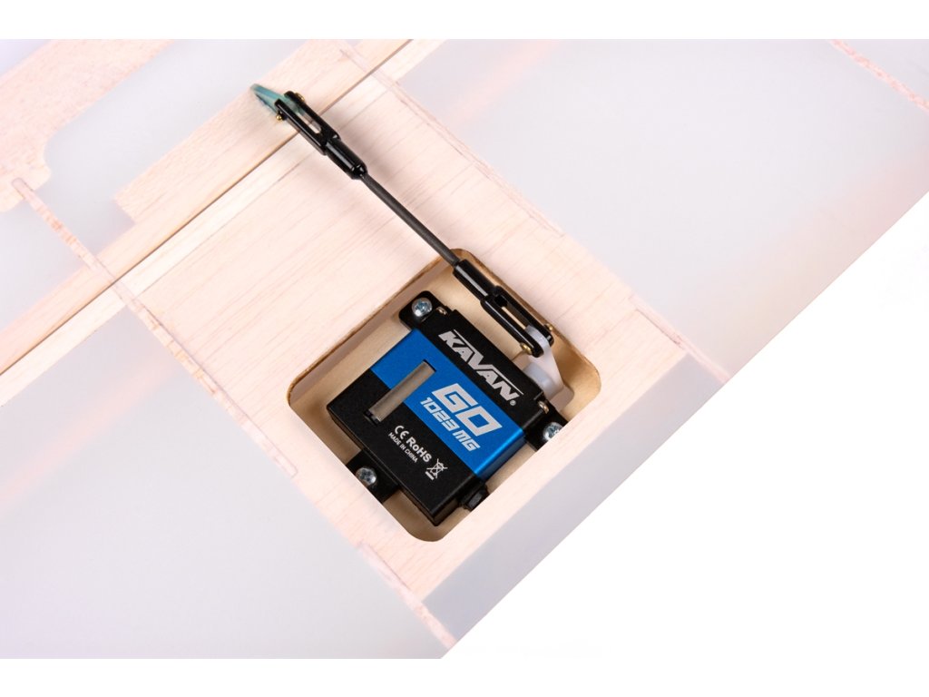 Pro ovládání modelu budete potřebovat nejméně sedmikanálovou RC soupravu. Pro rekreační létání vyhoví dobrá 15-20 g mikroserva s kovovými převody a tahem aspoň 2,5 kg.cm; pro sportovní a soutěžní létání byste neměli váhat s instalací silných a rychlých mikroserv, jako jsou KAVAN GO-1023MG pro křidélka a klapky a KAVAN GO-1020MG/GO-1021MG pro směrovku a výškovku (ve stavebnici dodávaná lože jsou „šita na míru“ těmto servům).