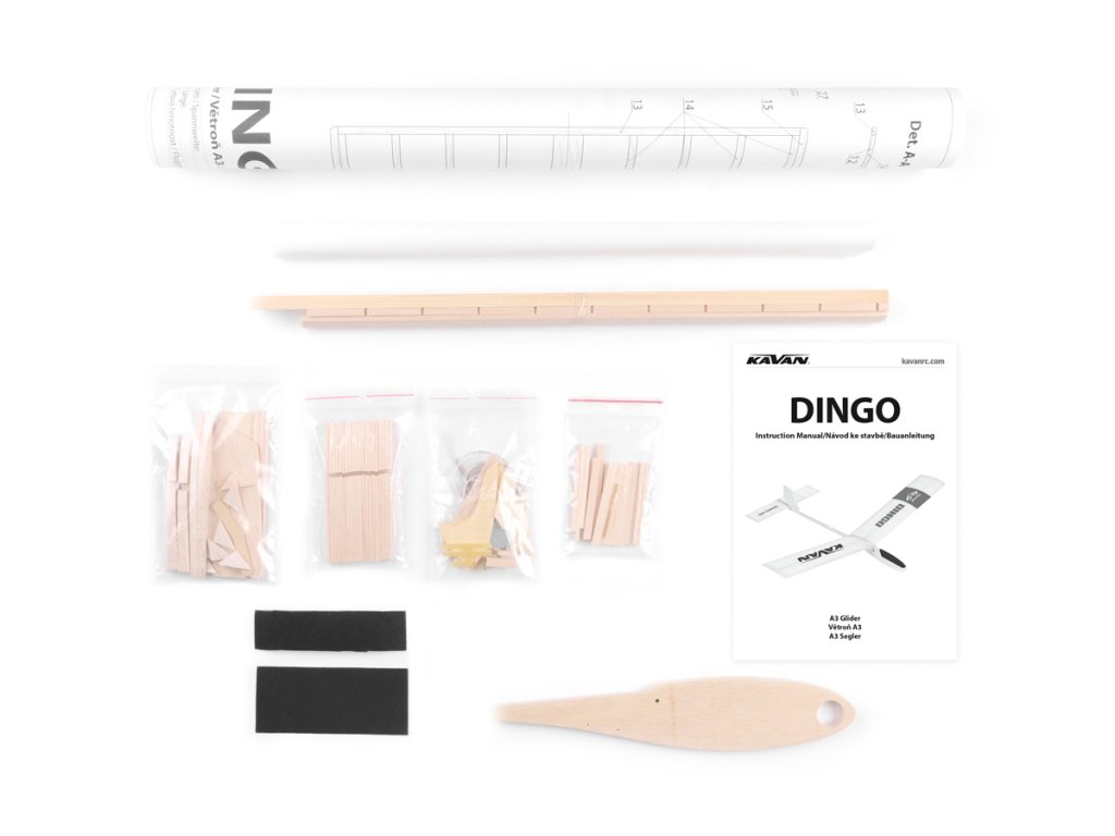 Větroň kategorie A3 s konstrukčními nosnými plochami potahovanými papírem. Jednoduchý model pro mírně pokročilé navazující na Kikinu, Harryho, Trempíka nebo Kose, který umožní dále rozvíjet základní modelářské dovednosti. Kromě hodu z ruky lze model díky nastavitelnému bočnímu háčku úspěšně vlekat na 25 m lanku (silonovém vlasci). S Dingem se v žákovských soutěžích kategorie A3 určitě neztratíte. Stejně tak si s ním dříve narození mohou se slzou v oku zavzpomínat na modelářské začátky kdysi v temném dávnověku minulého století...
