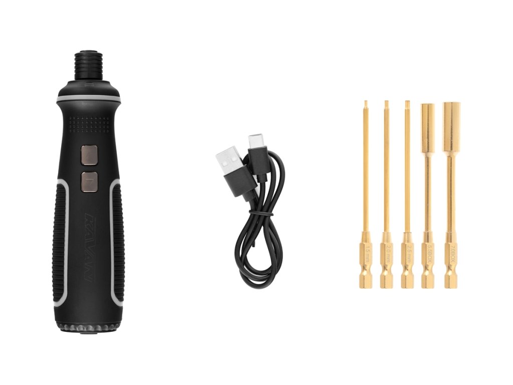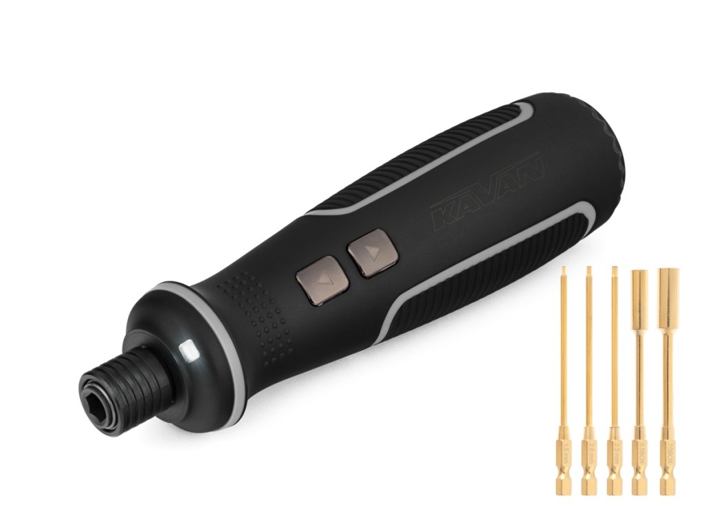 KAVAN elektrický šroubovák je praktický pomocník, který uleví vašemu zápěstí a výrazně urychlí práci při skládání a údržbě RC modelů a jejich součástí.