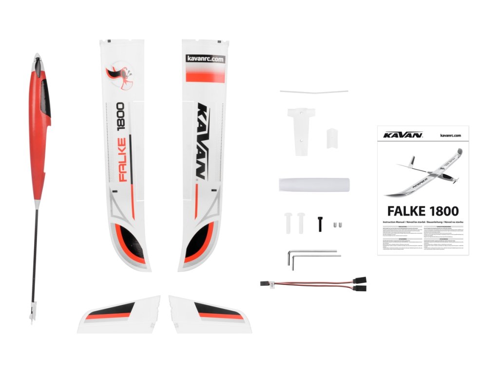Pro ovládání modelu v nouzi vystačíte i se čtyřkanálovou RC soupravou s mixem pro motýlkové ocasní plochy – v základním provedení jsou křidélka zapojena pomocí Y-kabelu jen do jednoho kanálu. Ideální je samozřejmě použití aspoň šestikanálové počítačové RC soupravy umožňující nezávislé ovládání křidélek dvěma servy a jejich mixování v roli aerodynamické brzdy (obě křidélka se vychylují souhlasně nahoru), což dnes umí i cenově dostupný Radiolink AT9S nebo AT10II nebo Futaba T6K či T10J. V takovém případě je nutno nahradit Y-kabel křidélek v trupu dvěma (15–30 cm) prodlužovacími kabely. V návodu samozřejmě nechybí důkladná tabulka s prověřeným výchozím nastavením výchylek kormidel (včetně mixů), abyste FALKE snadno připravili k letu.