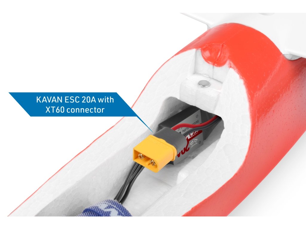 Motor *C2714-1450 Regulátor *KAVAN R-20B Vrtulové listy *7x6“ Akumulátor KAVAN 11,1V 1200 mAh 30/60C nebo KAVAN 11,1V 1600 mAh 30/60C Serva *4x GO-09 RC souprava min. 4 kanály s mixem pro motýlkové ocasní plochy *) Součást ARF setu