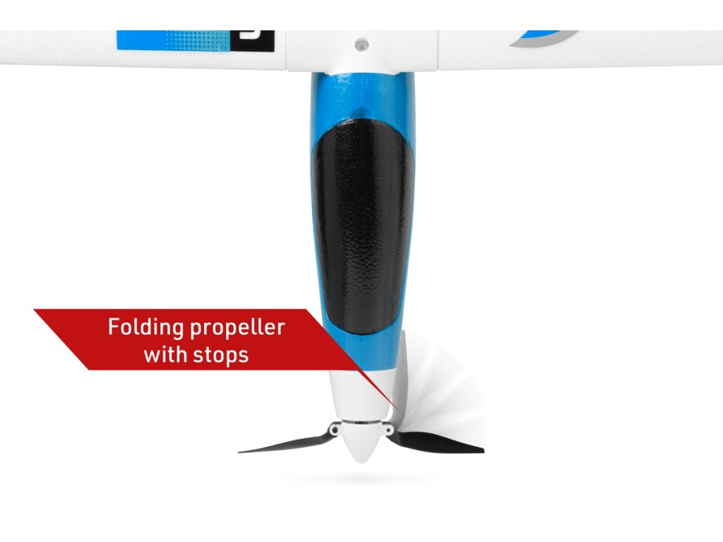 Odnímatelné motýlkové ocasní plochy jsou z rovněž z pěnového EPO, k trupu se upevňují plastovým šroubem.