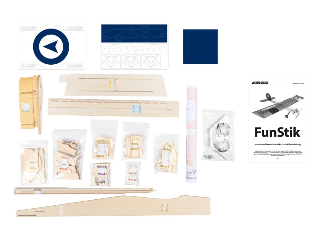 Je čas pro pořádnou zábavu! Rekreační akrobatický sport-flyer FunStik v retro „fokker-morane“ stylu vám umožní si pořádně zadovádět v dílně i na letišti. FunStik je ideálním projektem pro modeláře, který má již zkušenosti se stavbou jednodušších modelů v rozsypu a spolehlivě zvládá létání s hornoplošníky s ovládanými křidélky. Díky promyšlené konstrukci s laserem vyřezávanými díly opatřenými výstupky a zářezy, které do sebe zapadají jako díly puzzle skládačky, jde stavba velmi rychle a snadno. Ať už FunStik opatříte spalovacím motorem 3,5–4ccm nebo 500–600W střídavým elektromotorem, dostanete obratný a svižný akrobatický model, který vás jen tak neomrzí!
