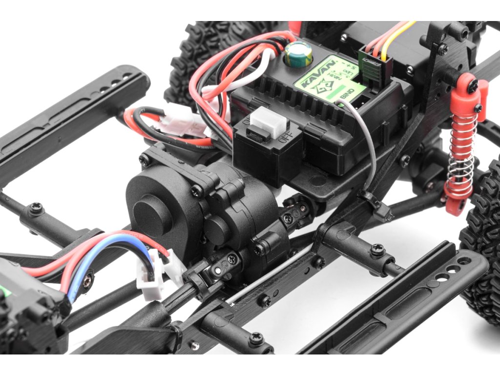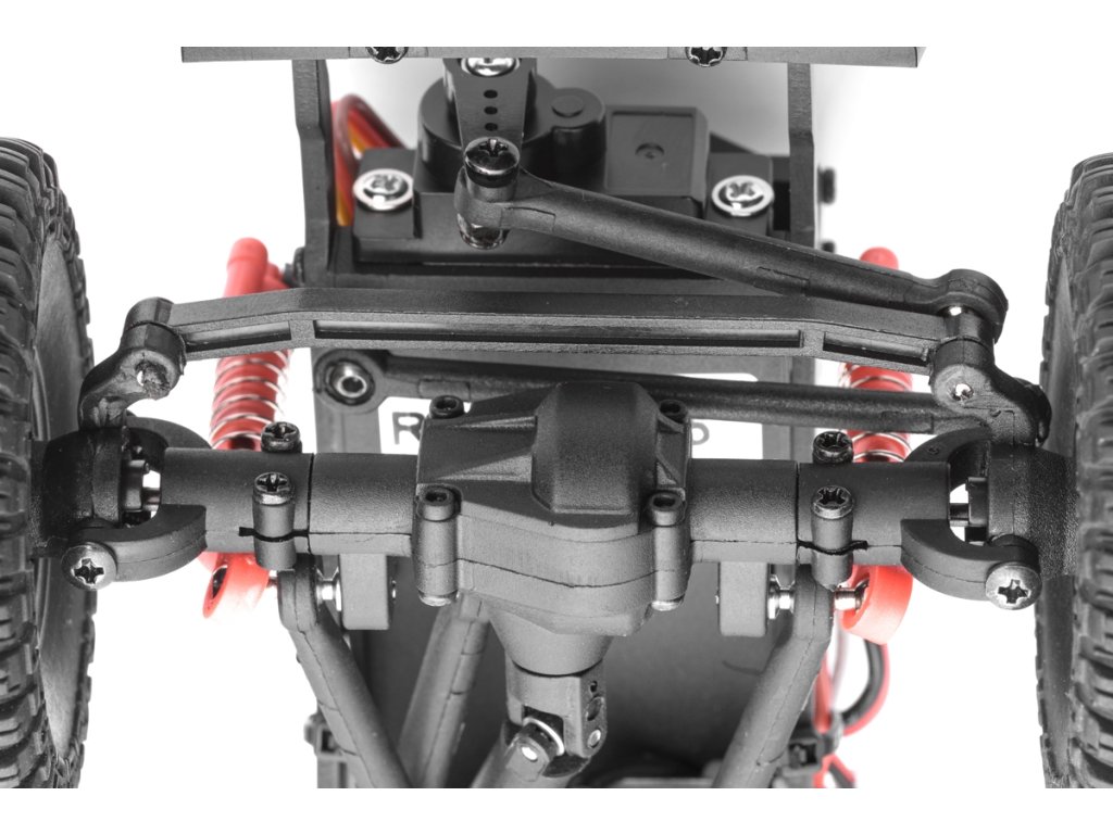 Silný motor pomůže bez problémů zkrotit redukční převodovka. Digitální servo a kvalitní systém dálkového ovládání pak dodá jistotu a přesnost. Vysílač obsahuje potřebná nastavení pro vystředění, reverz i koncové body a díky snadnému rozložení nezabere žádné místo navíc.