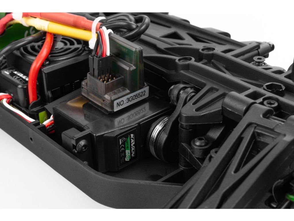 Model je vybaven spolehlivým 6kg servem a 50A regulátorem, které zajišťují kontrolu nad řízením za všech okolností.
