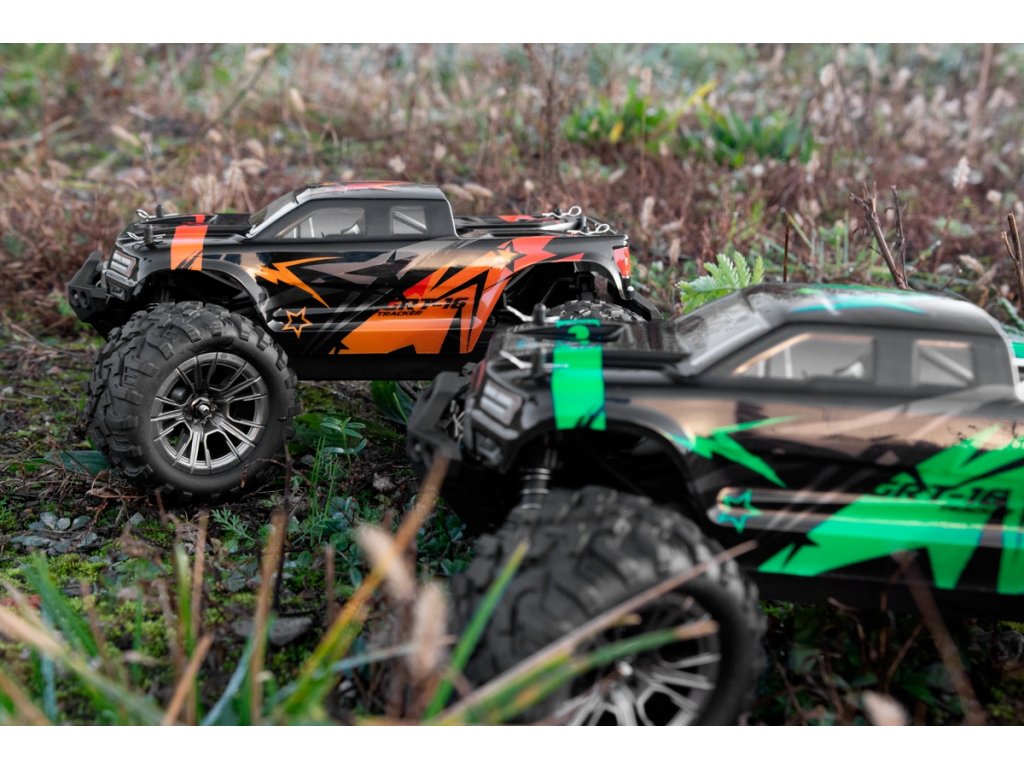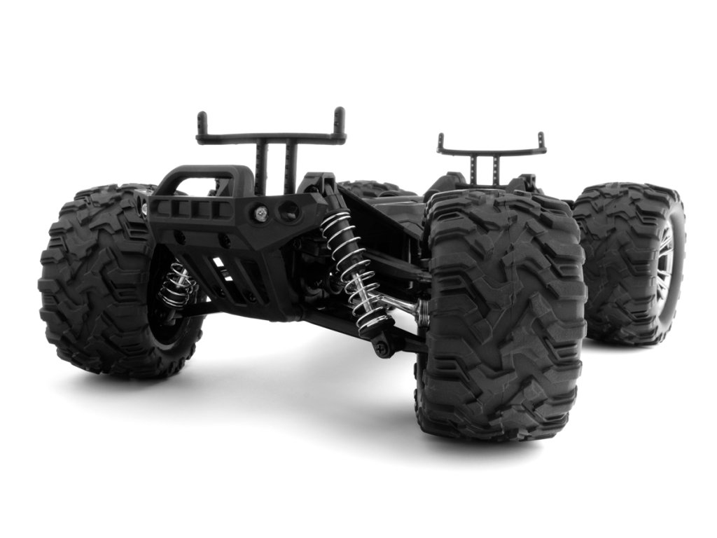 Tento malý monster truck se chlubí výrazně lakovanou karoserií s unikátním designem, který vás odliší od ostatních. Ale není to jen o vzhledu. Jednoduchá a pevná konstrukce podvozku nabízí odolnost, díky které odolá nárazům při pilování řidičské techniky.