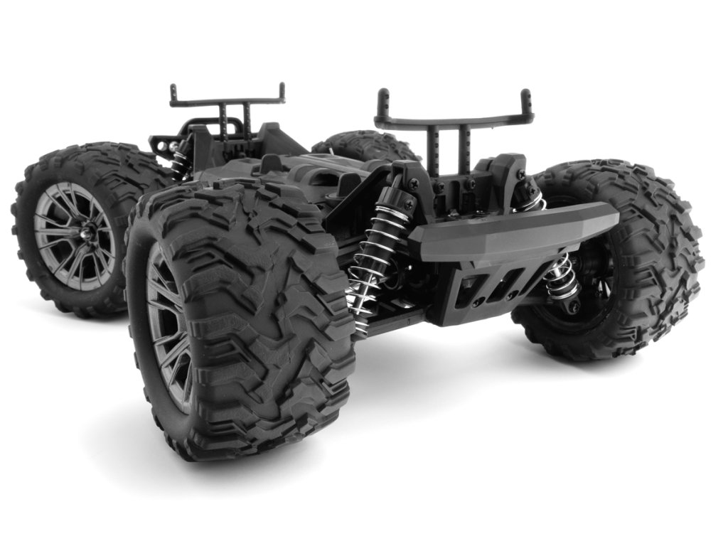 Tento malý monster truck se chlubí výrazně lakovanou karoserií s unikátním designem, který vás odliší od ostatních. Ale není to jen o vzhledu. Jednoduchá a pevná konstrukce podvozku nabízí odolnost, díky které odolá nárazům při pilování řidičské techniky.