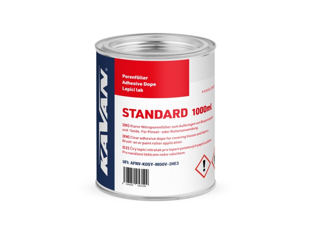 Použití: Zpravidla se nanáší neředěný (je-li třeba, použijte KAVAN Ředidlo STANDARD); na kostru nanášejte měkkým plochým štětcem nebo válečkem. Ihned přitiskněte a přihlaďte potahový papír nebo plátno; případné vzduchové bubliny odstraňte štětcem nebo válečkem. Nechejte vyschnout nejméně 24 hodin a přebruste jemným brusným papírem 600–1000. Při použití na modelu se spalovacím motorem je nutno nanést vrchní krycí vrstvu odolnou vůči palivu (např. KAV56.9990 KAVAN krycí lak POLY, 5MA4401 RC Color bezbarvý lak ve spreji).