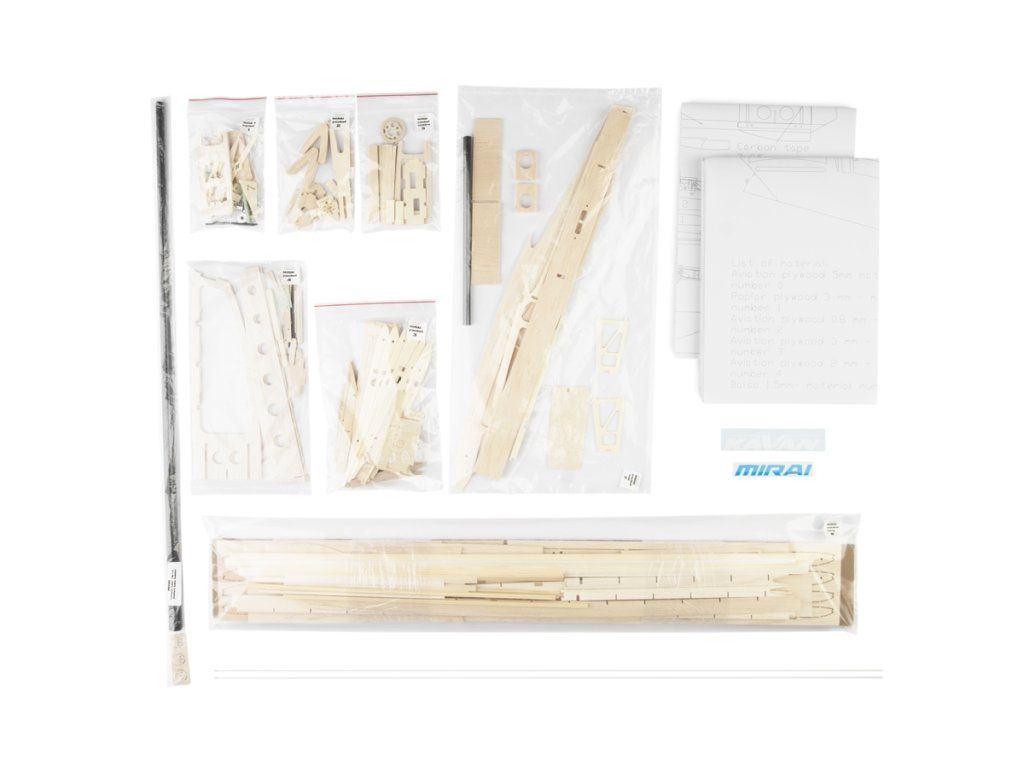 „Dvoumetrovky" jsou také ideální pro každého, kdo chce stavět modely sám, klasickým způsobem z balsy, překližky a smrkových nosníků. Stavba jde hezky rychle a není jí mnoho – MIRAI V je z hlediska stavby pořád docela jednoduchý model, ale není určen pro úplné začátečníky.