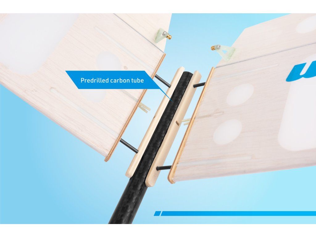 Stavebnice obsahuje: CNC vyřezávané balsové a překližkové díly, nosníky a balsová prkénka na tuhý potah, uhlíkový trubkový ocasní nosník, sadu příslušenství, arch samolepících obtisků, stavební plán v měřítku 1:1 a návod.