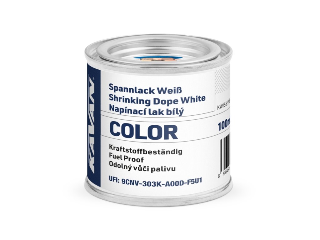 Bílý nitrolak pro napínání potahových papírů a pláten odolný vůči žhavícímu palivu i benzínu. Pro nanášení štětcem, válečkem nebo stříkáním.
